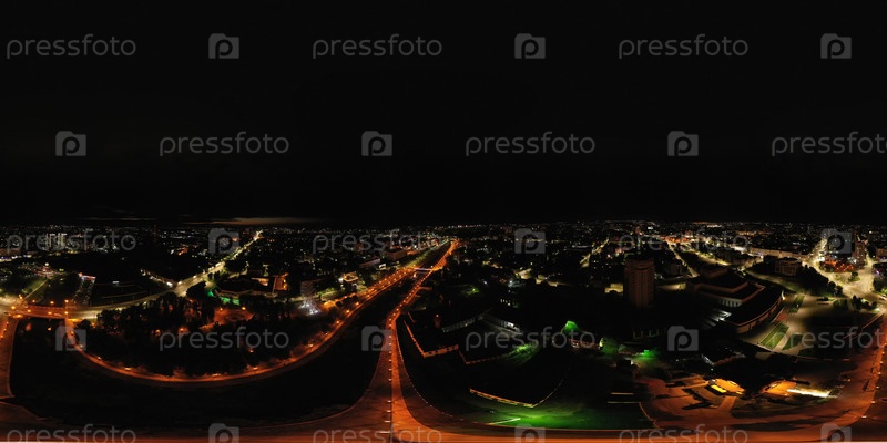 Иваново, Россия Ночная панорама города Вид с воздуха Панорама 360°