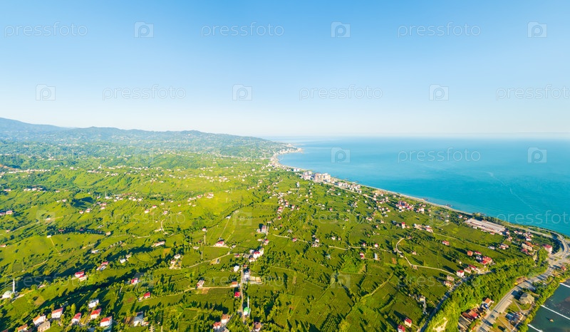 Ардешен, Турция. Черноморское побережье Турции. Летнее солнечное утро. Панорама. Вид с воздуха