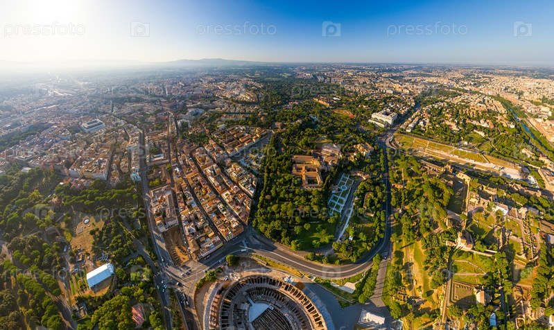 Рим, Италия. римский форум. город в пределах досягаемости. панорама города летом утром. вид с воздуха