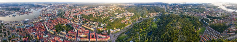 Панорамный вид с воздуха на центр города вечером.Закат солнца