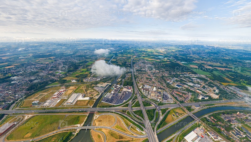 Гент, Бельгия Промышленный район Панорама города Летний день облачная погода Вид с воздуха