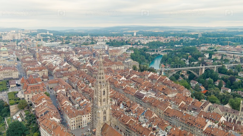 Берн, Швейцария.Бернский собор.Панорама города с видом на исторический центр.Летнее утро, Aerial View
