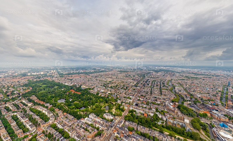 Амстердам, Нидерланды Панорама города летом утром в пасмурную погоду