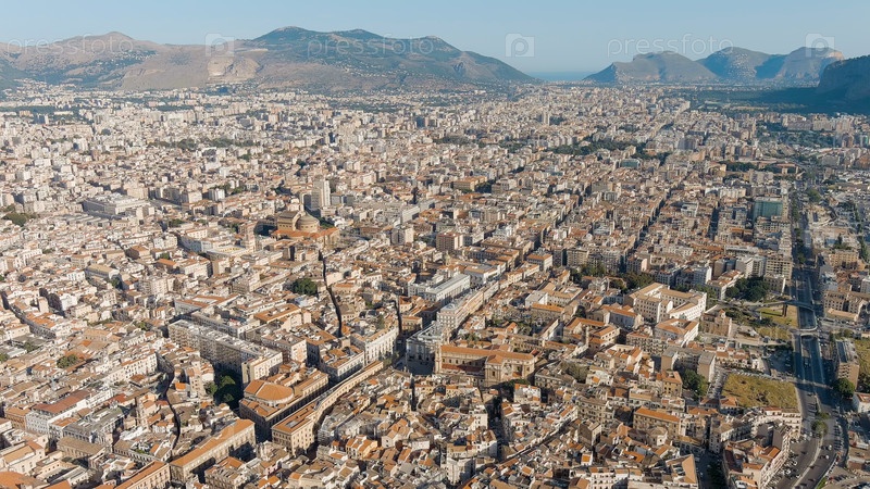 Палермо, Сицилия, Италия.Панорамный вид, Лето.Палермо - портовый город, столица итальянского острова Сицилия, Aerial View