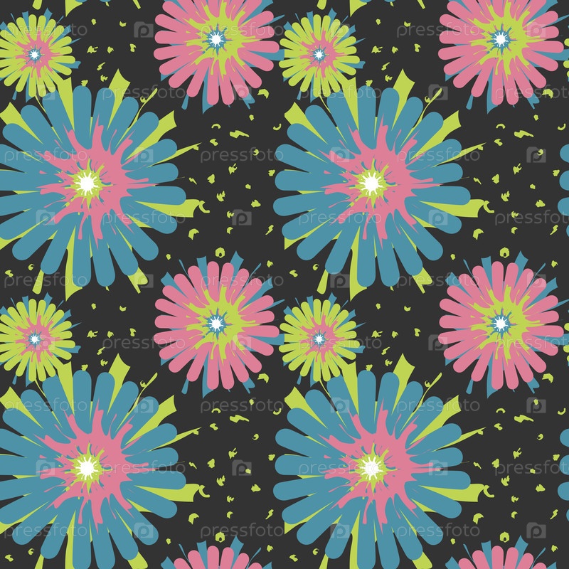 Векторный бесшовный орнамент в детском стиле с цветами
