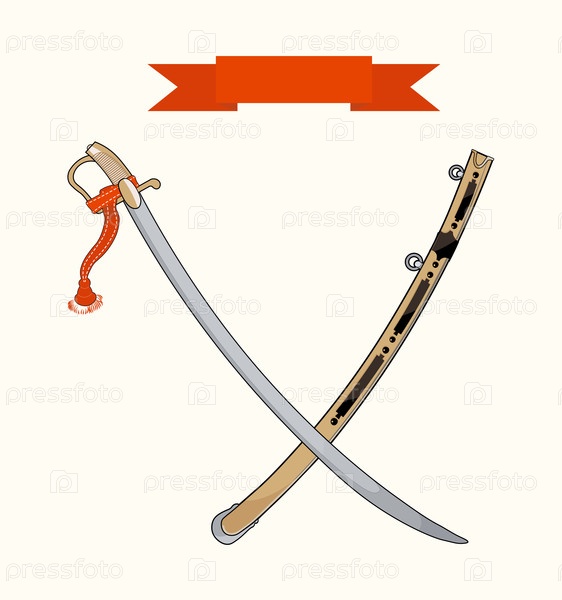 Векторный рисунок: 19 век легкая кавалерия сабель и красная лента