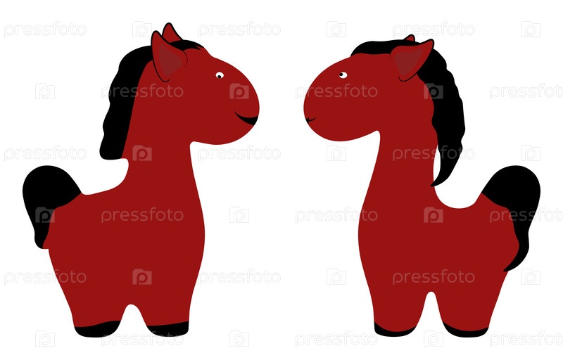 Два милых красных пони лицом друг к другу, иллюстрация векторной пары