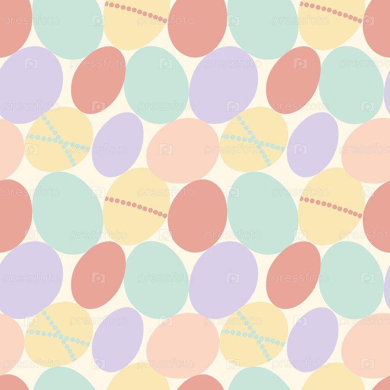 Бесшовный векторный рисунок с пастельными пасхальными яйцами в мягких цветах и деликатным точкальным орнаментом