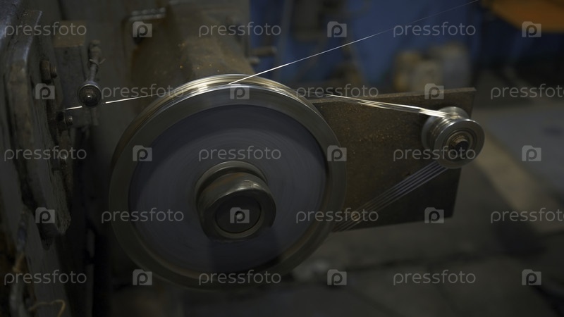 Промышленная вращающаяся машина с проволокой. креативное. вращающиеся катушки обмотка проволоки на фабрике. промышленный мастер-класс с проволом на вращающихся машинах металлургического производства