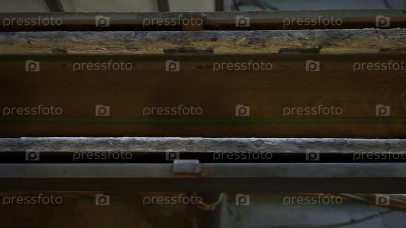 Близкий взгляд сверху на длиннооткрытую трубу с растяжкой проволоки внутри текущего раствора.Креативность.Индустриальный фон, интерьерные детали завода