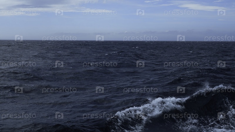 Прекрасный вид на горизонт голубого моря с волнами. Клип. Пена от волн в синем море. В синем море с волнами на фоне горизонта с голубым небом