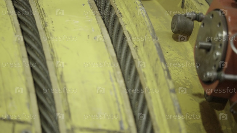 Близкий взгляд на компоненты промышленных машин, демонстрируя подробные сложные кабели и различные механические части