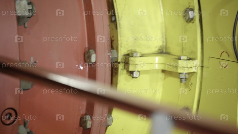 Детальное крупнометражное изображение сложной промышленной машины, в котором представлены ее основные компоненты