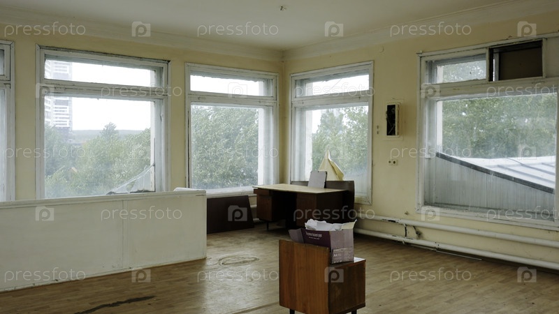 Вид на пустую старую квартиру со многими большими окнами