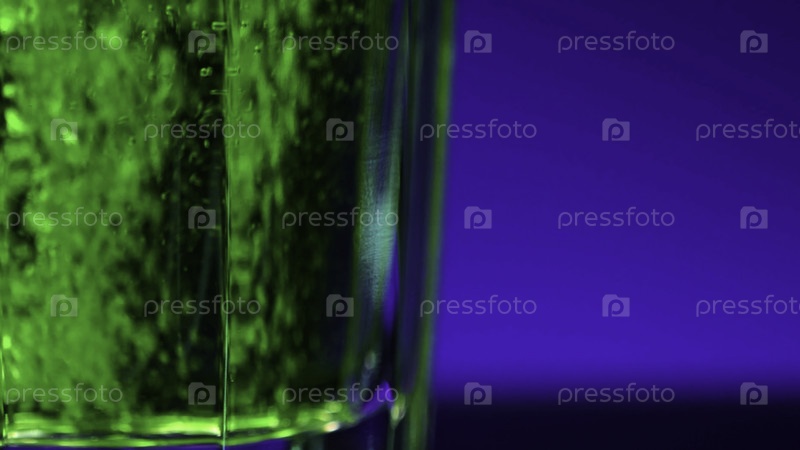 Налейте безалкогольный напиток, зеленую газировку внутри стекла Изолированный на синем фоне