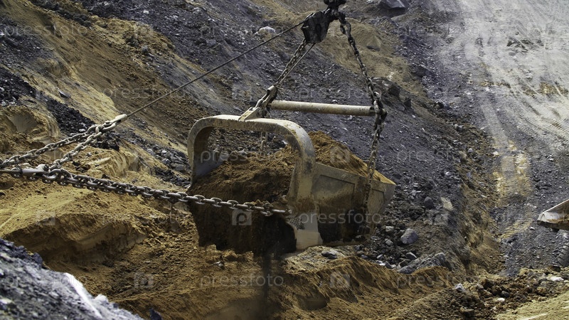 Высокопроизводительный и мощный экскаватор сегодня копает в землю на оживленной строительной площадке