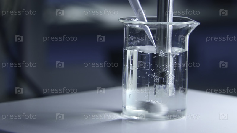 Вращающееся вещество в стакане жидкости в лаборатории. запасные кадры. химический эксперимент с веществом и жидкостью в колбе. профессиональный химический эксперимент в лаборатории