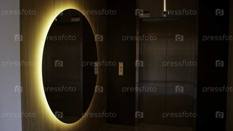 Вид изнутри входного зала. Скриншоты. Интерьер вестибюля с лифтом, туалетами и светящимся зеркалом