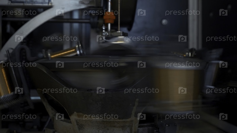 Вращающиеся катушки с проволокой. креативные. быстрые вращающиеся катушки с медным проволом на металлургическом предприятии. автоматическая машина для обмотки медной проволоки