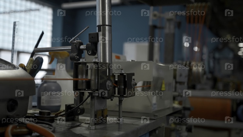 Изолированные медные провода, быстро движущиеся на промышленном заводе.Креативное.Питаящие катушки на фабрике