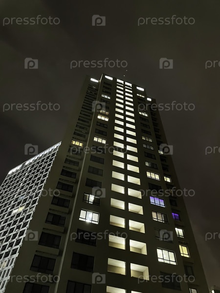 Потрясающий ночной вид городского высокогорного здания с красивыми огнями на дисплее