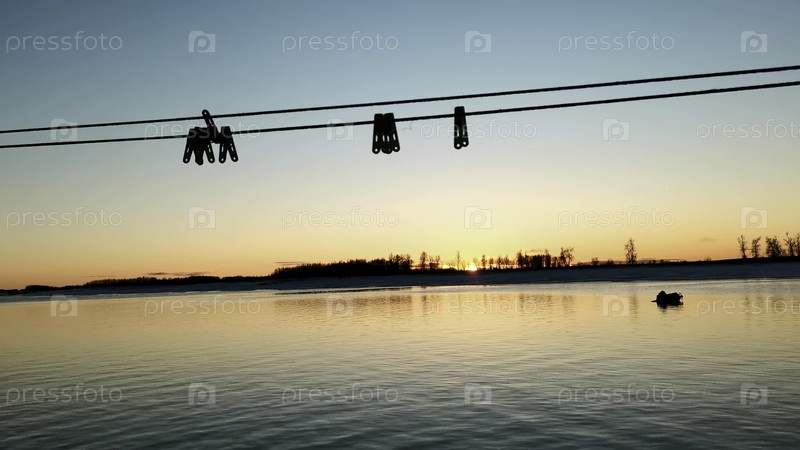 Прекрасный закат и голубое небо над лесным озером в вечернее время