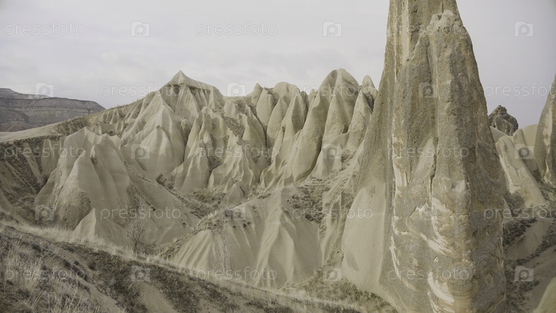Пустынные горы. Действие. Светлый дневной пейзаж с пустынными горами на фоне синего неба. Высокое качество 4k кадров