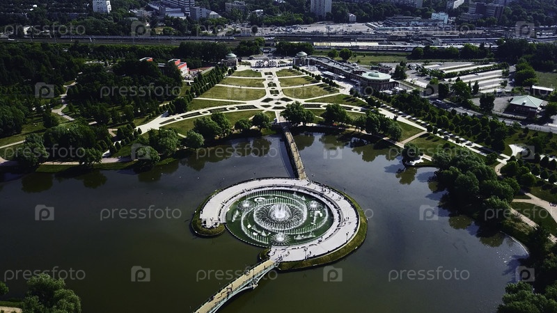 Геометрические пейзажные тропы и фонтаны.Креативные.Вид сверху на декоративный парк с дорожками и фонтаном.Исторический парк с фонтаном в пруду и роскошная геометрическая аллея