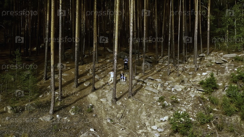 Небольшая группа туристов, исследующих летний лес