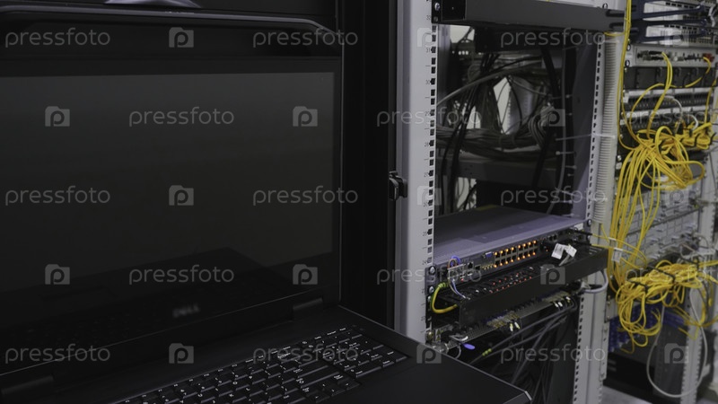 Промышленный центр обработки данных с компьютерным помещением. Скриншоты. Стена с компьютерными проводами и системами. Много проводов для компьютерной базы данных промышленного центра