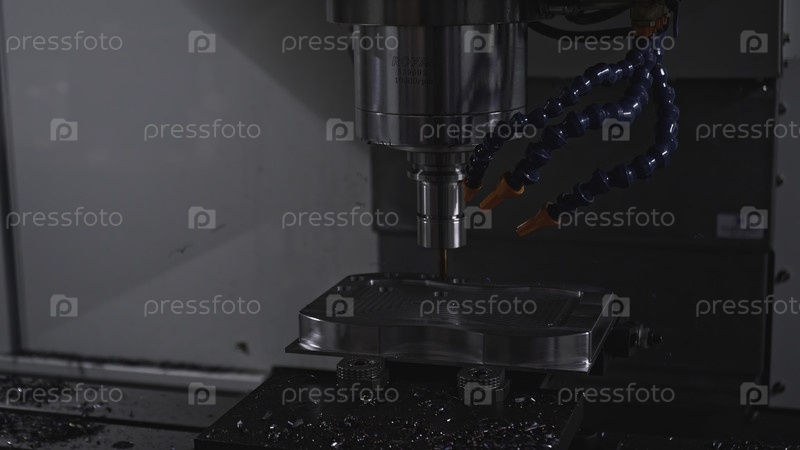 Автоматизированная вращающаяся сверла для металла. СМИ. Машина с буровым движением в производстве. Роботическая машина с бурением, режущей металл