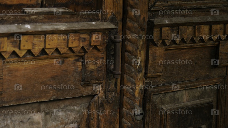 Античные деревянные двери с резными элементами из древесины
