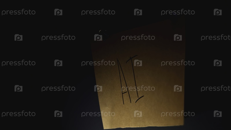 Мистические заметки на веревках. Стоковые кадры. Ночные записки на веревках с ребусом в кабинете. Таинственные слова на примечаниях в ночном офисе