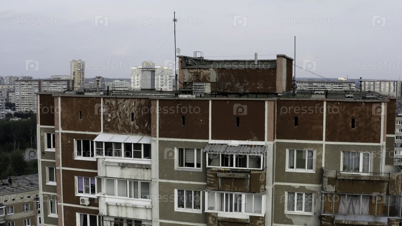 Вид на типичное многоэтажное жилое здание в городской спальной зоне. Скриншоты. Старая панельная квартира с окнами и балконами