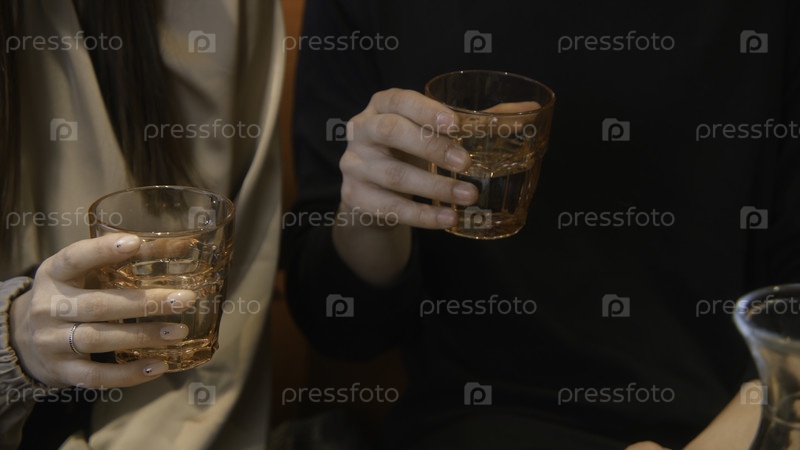 Ближайшее изображение пары на свидании со стаканами в кафе. Скриншоты. Парень и девушка бьют бокала с прозрачным напитком. Молодая пара на свидании с напитками и едой