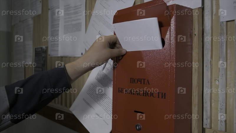 Человек кладет документ в ящик.Клип.Уведомление в красном ящике для доставки.Слиток уведомления в красном ящике при входе