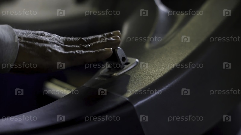 Ближайшее изображение мужской руки, тянущей рычаг игрового автомата.Человек играет в игровой автомат, концепция казино