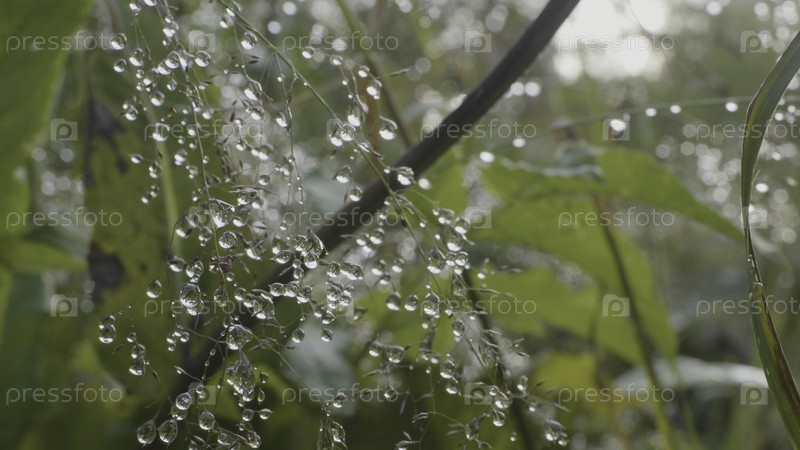 Большие капли росы на траве