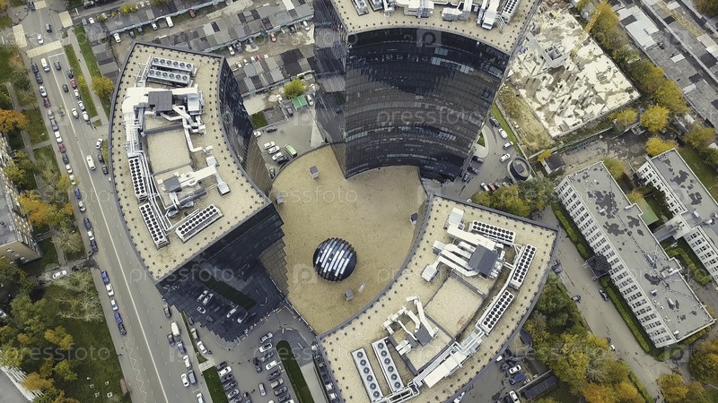 Новое офисное здание в бизнес-центре.Клип.Вид сверху на роскошный бизнес-центр