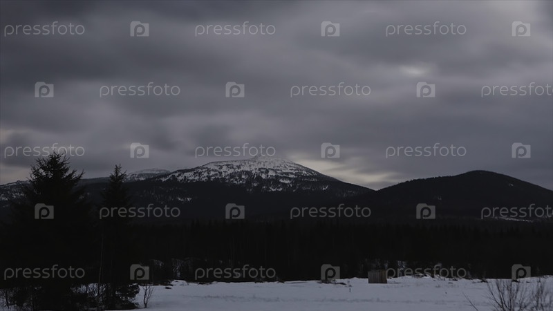 Временный закат. Красочный зимний закат в Карпатах. Видео. Ранняя ранняя зима Горы Снег Заход солнца Облака лыжи. Отличная петля для природных композитов