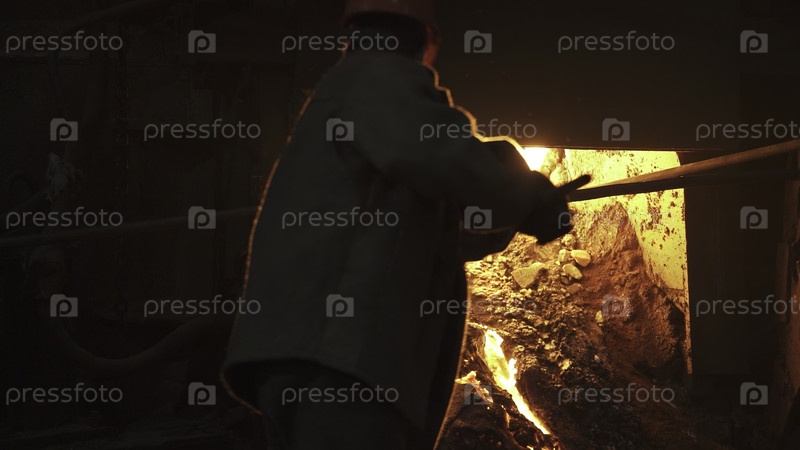 Рабочий умело работает на сталелитейном заводе, обрабатывая расплавленный металл в условиях сильной жары