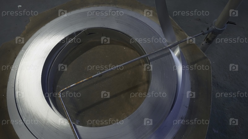 Раскрутка металлической линии на машине.Креативное.Коуль плоской металлолинии на промышленной машине.Линия вращающейся пластины в металлургическом производстве