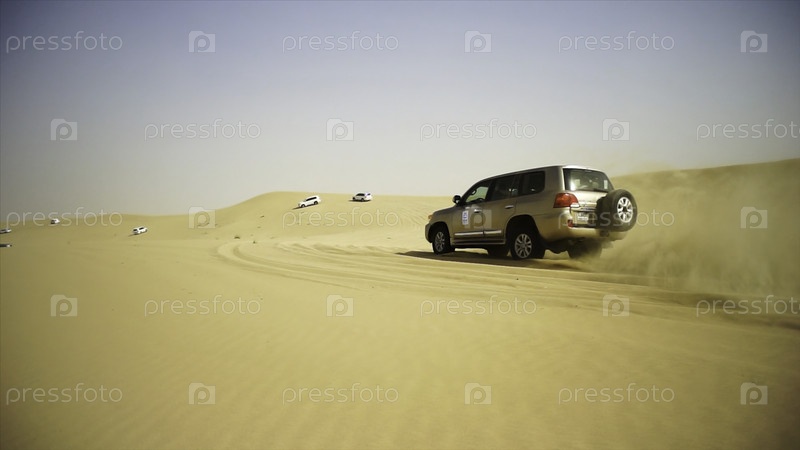 Поездка на внедорожниках для туристов в пустыне. Акции. Группа людей, выходящих из автомобиля во Вьетнамской пустыне во время сафари. Група друзей, развлекающихся на дюнном песке. Концепция подлинного приключения путешествия с лучшими друзьями, разделяющи