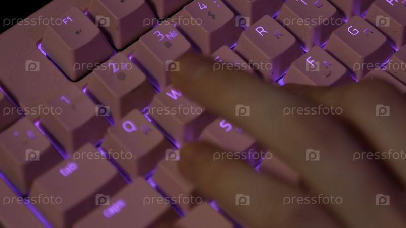 Клубовый снимок пальцев, нажимающих на клавиатуру во время игры. Скриншоты. Розовая светящаяся клавиатура для компьютерных игр. Нажатие пальцами на игровые клавиши компьютерной клавиатуры