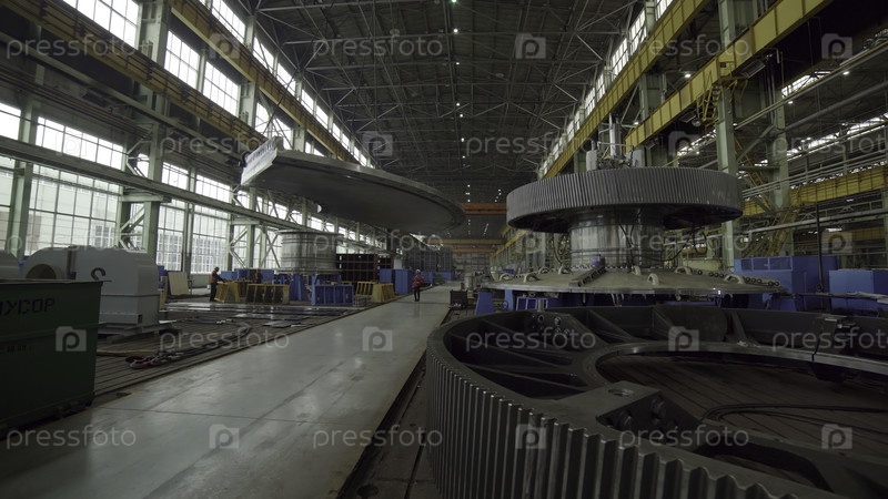 Интерьер крупного производственного объекта показывает тяжелую технику и оборудование для различных производственных процессов