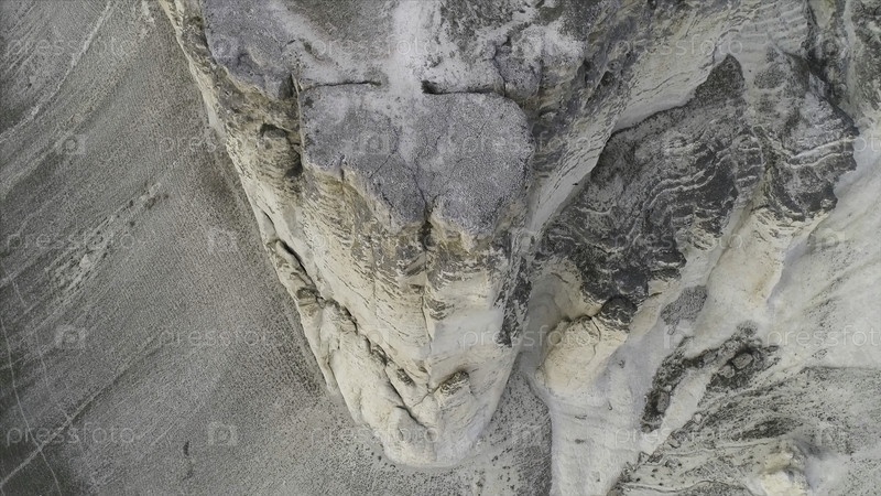 Аэропорт для восхитительного пейзажа из белой скалы с крутым склоном и долиной с зеленой травой.Белый известняк с вертикальной скалой на фоне голубого облачного неба