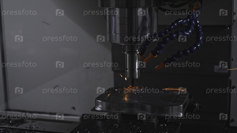Автоматизированная вращающаяся сверла для металла. СМИ. Машина с буровым движением в производстве. Роботическая машина с бурением, режущей металл