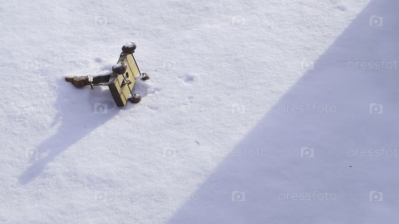 В безмятежном зимнем пейзаже кусок дерева лежит в снегу, а человек созерцает красоту, отражая спокойствие природы