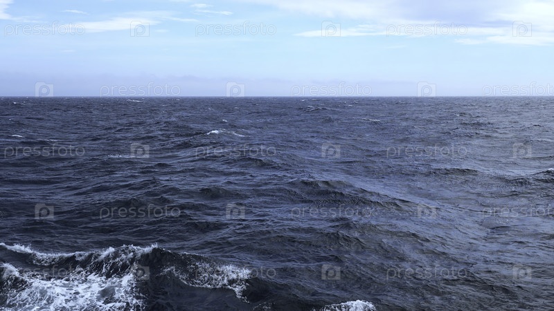 Прекрасный вид на горизонт голубого моря с волнами. Клип. Пена от волн в синем море. В синем море с волнами на фоне горизонта с синим небом