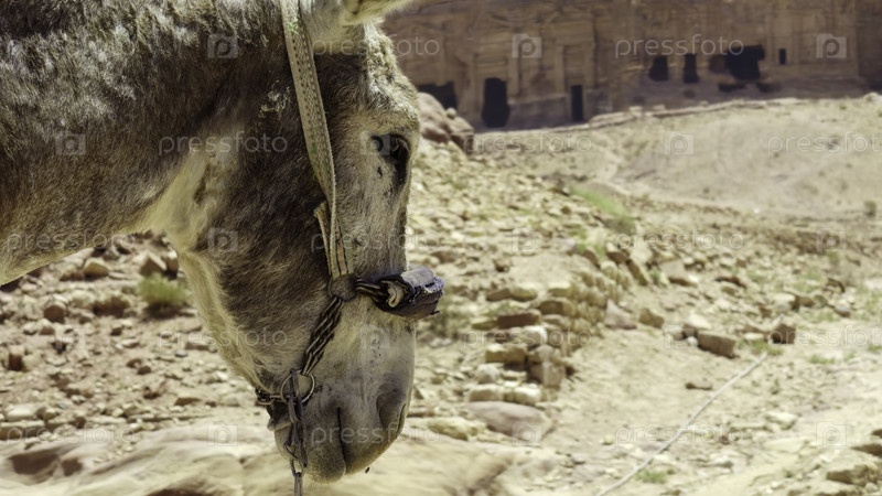 Увлекательный, подробный вид с головой осла перед живописным пейзажным пустынным фоном